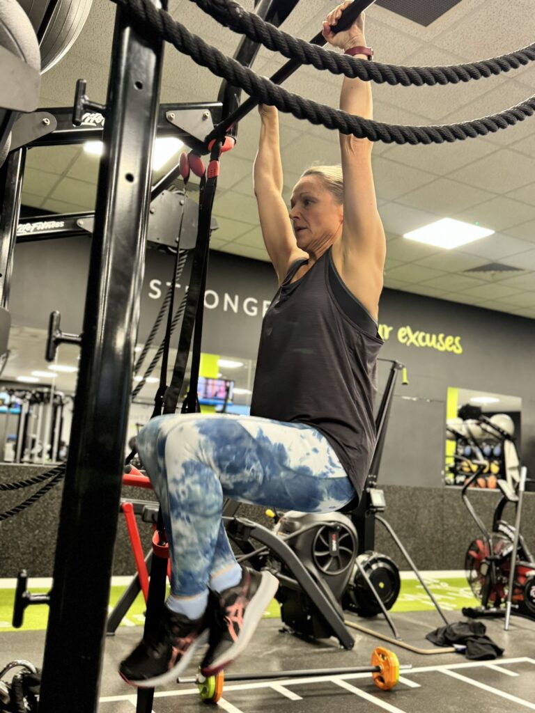 Her courage led her to Personal Training sessions with Liezi, who played a pivotal role in building Caron’s confidence. Despite challenges like reduced coordination and memory issues from her strokes, Caron persevered. She gradually transitioned from solo workouts to group classes like yoga, Pilates and spinning, each one helping her rediscover strength she thought she had lost.