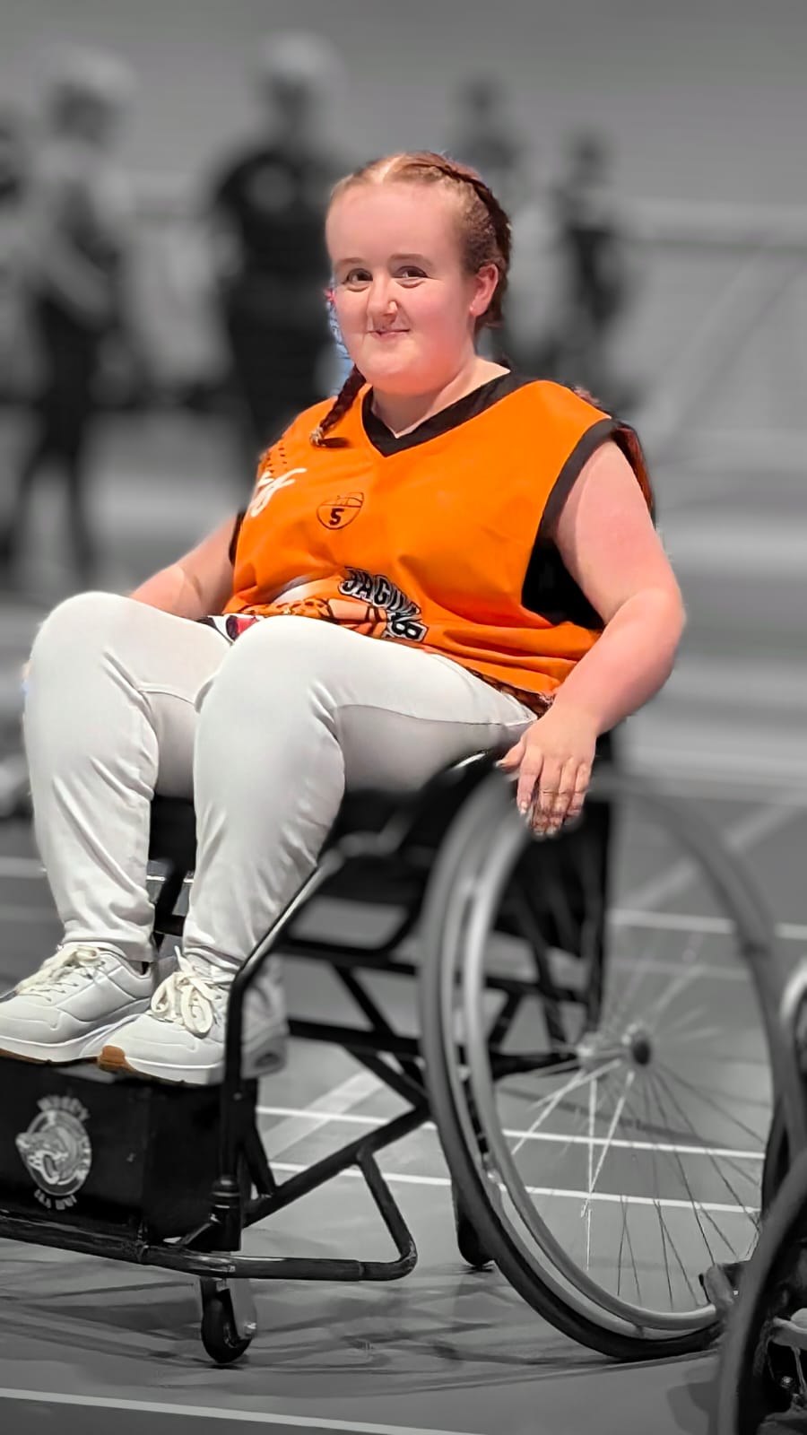 Leah (who has Spina bifida) attended her first Wheelchair Basketball session in July 2023 after her mum saw wheelchair basketball being delivered in the school where she worked, and decided to bring her along to try it with Jaguars WBC club. She turned up in a dress determined not to take part, but towards the end of the session she had been persuaded to sit in a sports chair, and that raised a smile.